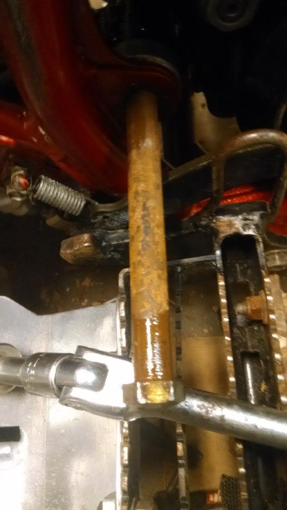 Now to my project I tried the swingarm bolt again with a bigger hammer, got it to move slightly but now its gone as far as a hammer is able to access?? And its still just as stiff, I tried drilling a hole into it and putting a smaller bar in to tap it out but it still wont budge, I'm not worried about ruining the bolt at this stage since I'll have another one from the parts blaster. Any ideas?