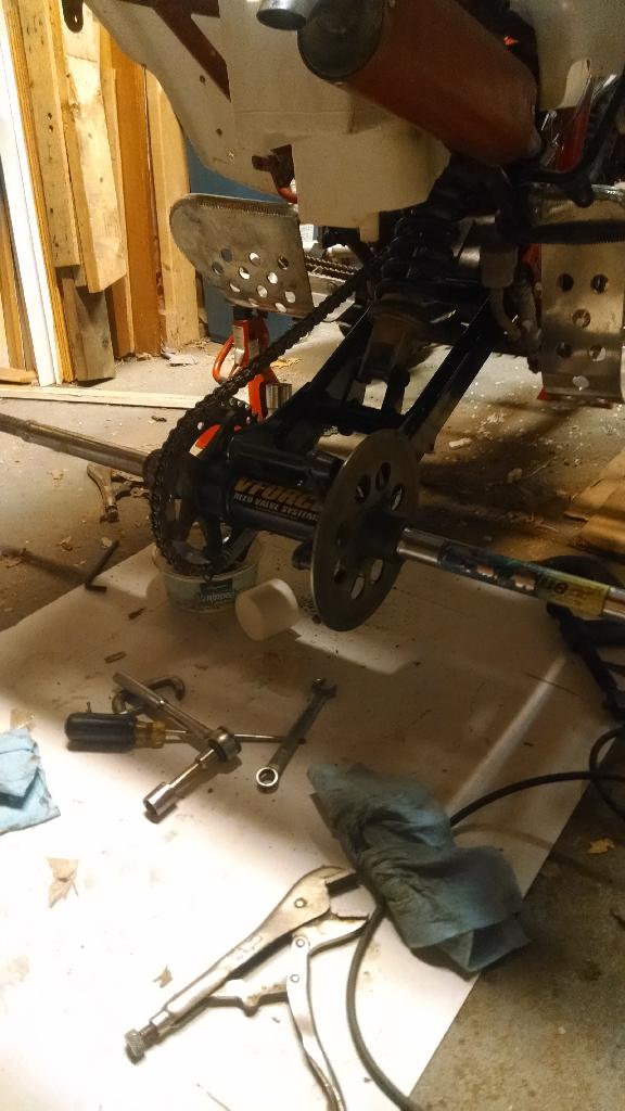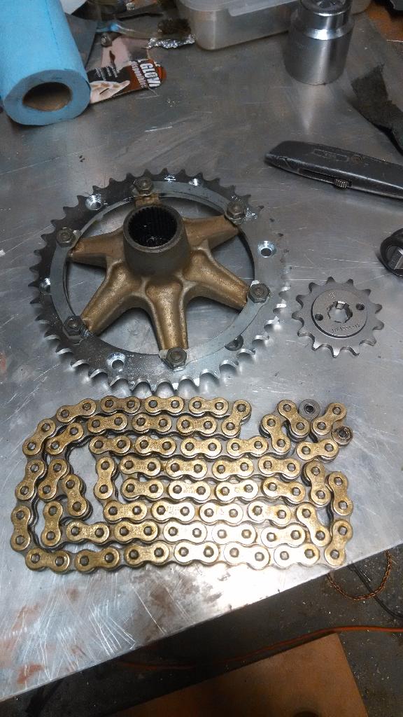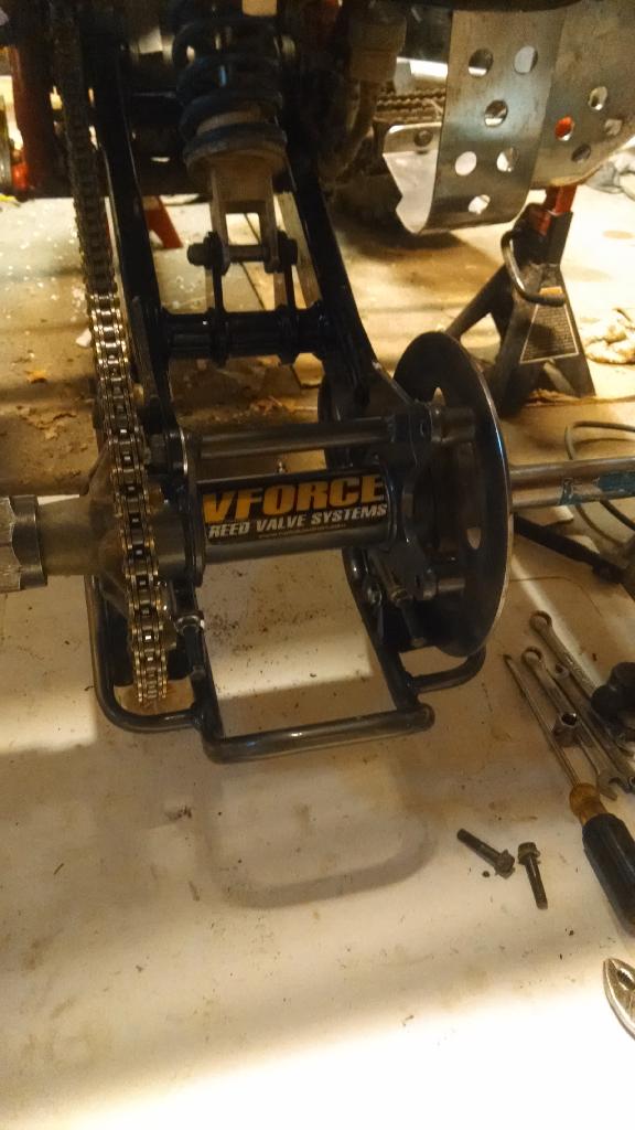 Got the swing arm, chain and sprockets. Got the rear end all put back together. Changed the rear brake pads as well. This quad was badly neglected by the PO on maintenance.
