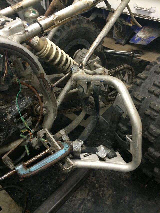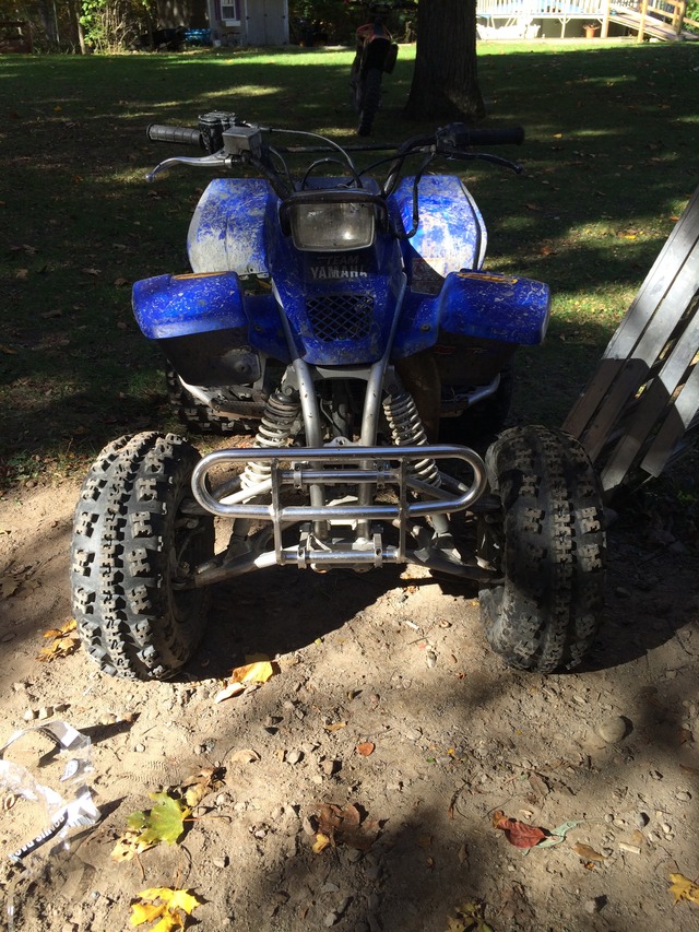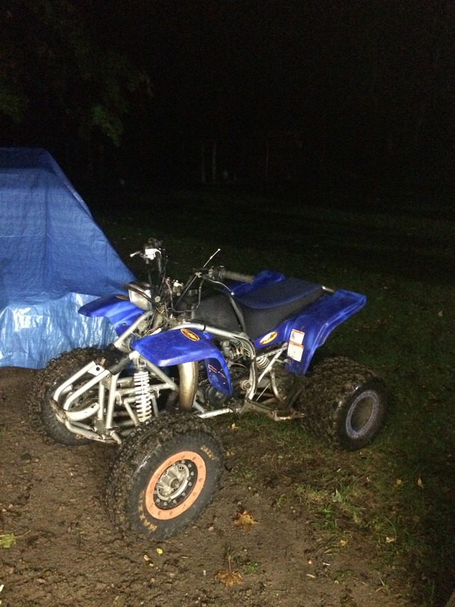 So this is where im at right now. Took the quad out for the first time and was very pleased with the power coming from an aircooled 200. The bike does have a full fmf exhaust which im sure helps alot and it also has the most horrible excuse for an oil block off ive ever seen but with lots of parts on order right now im sure this will end up being a fun little project.