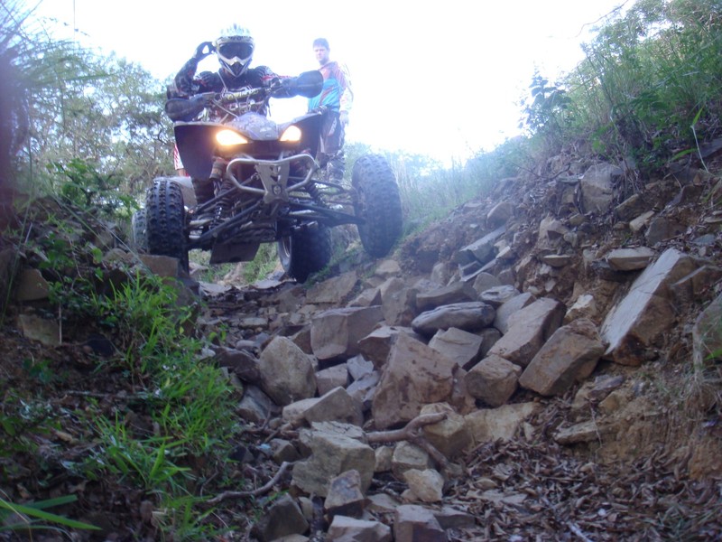 Soon after we got moving, we came across "Heart Break Hill" as the name suggests, it breaks hearts and lots of bikes, its not part of the trail, but an optional extra which my brother on his YFZ attempted, he ended up jumping off as it stalled and the quad rolled about 4 times until luckily it stopped. Damage = very badly bent steering stem, which we straightened in a tree with a tow strap and 4 guys pulling on the end. After we got it back together all was well!